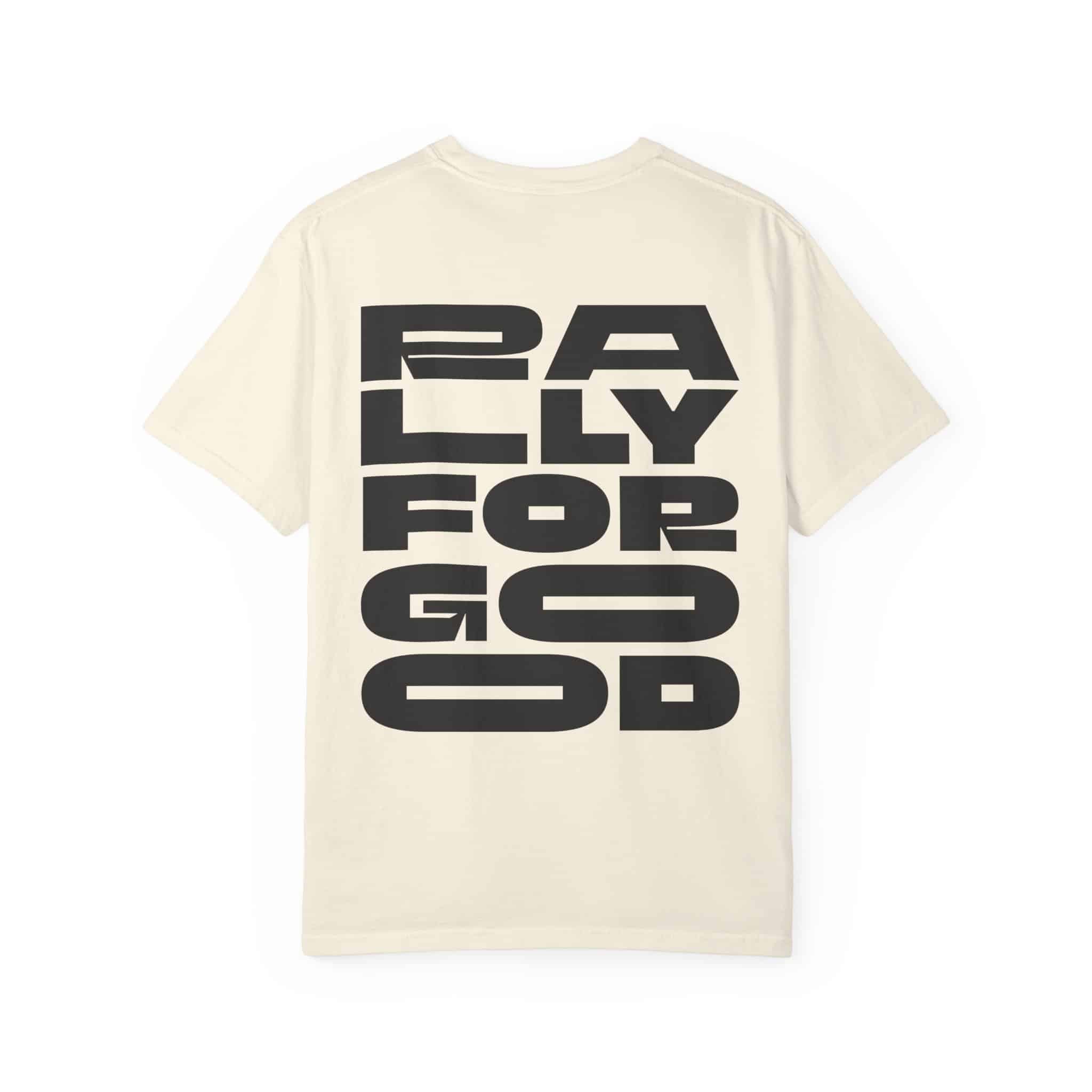 A casual nod to collective momentum, this “Rally for Good” design keeps things easy, optimistic, and effortlessly wearable.