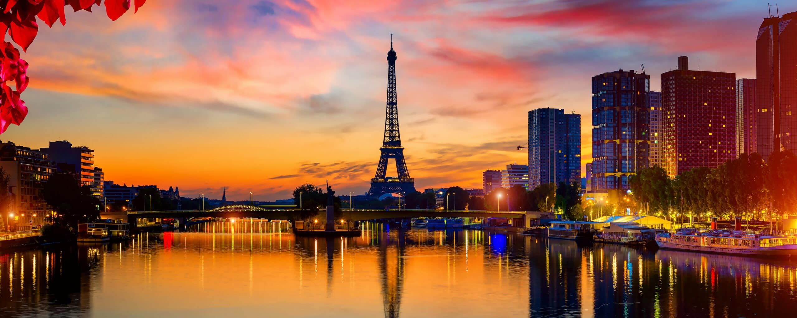 As twilight falls over Paris, you ascend the iron lattice of the Eiffel Tower, the city unfurling beneath you in a glittering sea of lights. From this vantage point, the Seine shimmers like liquid gold, bridges glint like jewels, and the rooftops of Montmartre and the Trocadéro glow under a rose-tinged sky.